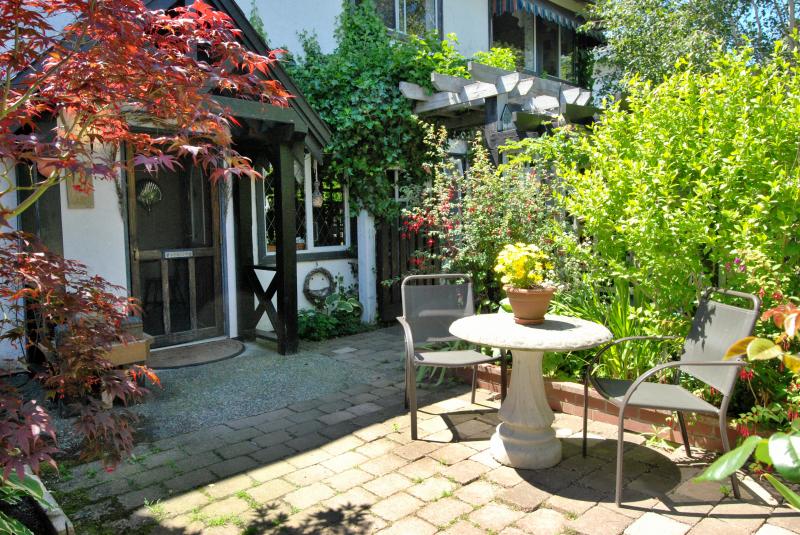 One of the most appealing features of Heathergate is the glorious, multi-hued garden and outdoor living space that surrounds it. Professionally landscaped and lovingly tended, this is a classic “English country garden” with plantings that range from rhododendrons to roses, manicured hedges to climbing shrubs. (The fact that Ned was a beekeeper helps guarantee that the grounds of Heathergate resemble an outdoor florist shop.) A riot of colour and texture – especially in summer – this abundant garden is very much an outdoor extension of the guest rooms at Heathergate. Whether reading a book or sipping your coffee – or glass of Chardonnay! – you can relax in the fresh air and savour the beauty of well-groomed nature while planning the day’s activities.