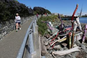 There are lots of great walks in Victoria, but one of our absolute favourites is the Westsong Walkway. Starting just across the Johnson Street bridge on the edge of the Songhees development, Westsong is a paved trail that follows the water’s edge for nearly three kilometres as it goes from Vic West to Esquimalt. Mostly level and wheel chair accessible, this meandering trail holds several surprises that range from installations of whimsical driftwood art to the possibility of seeing otters or seals at play.